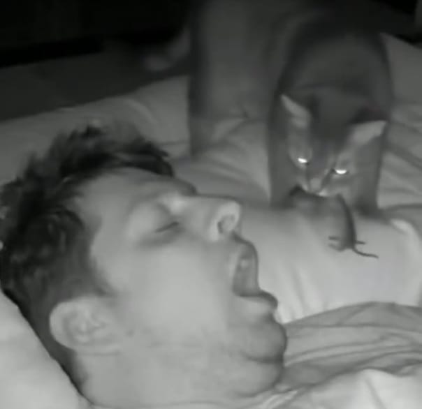 Is this video of a cat putting a mouse in its sleeping owner's mouth true? sealsvideodream Is this video of a cat putting a mouse in its sleeping owner's mouth true?