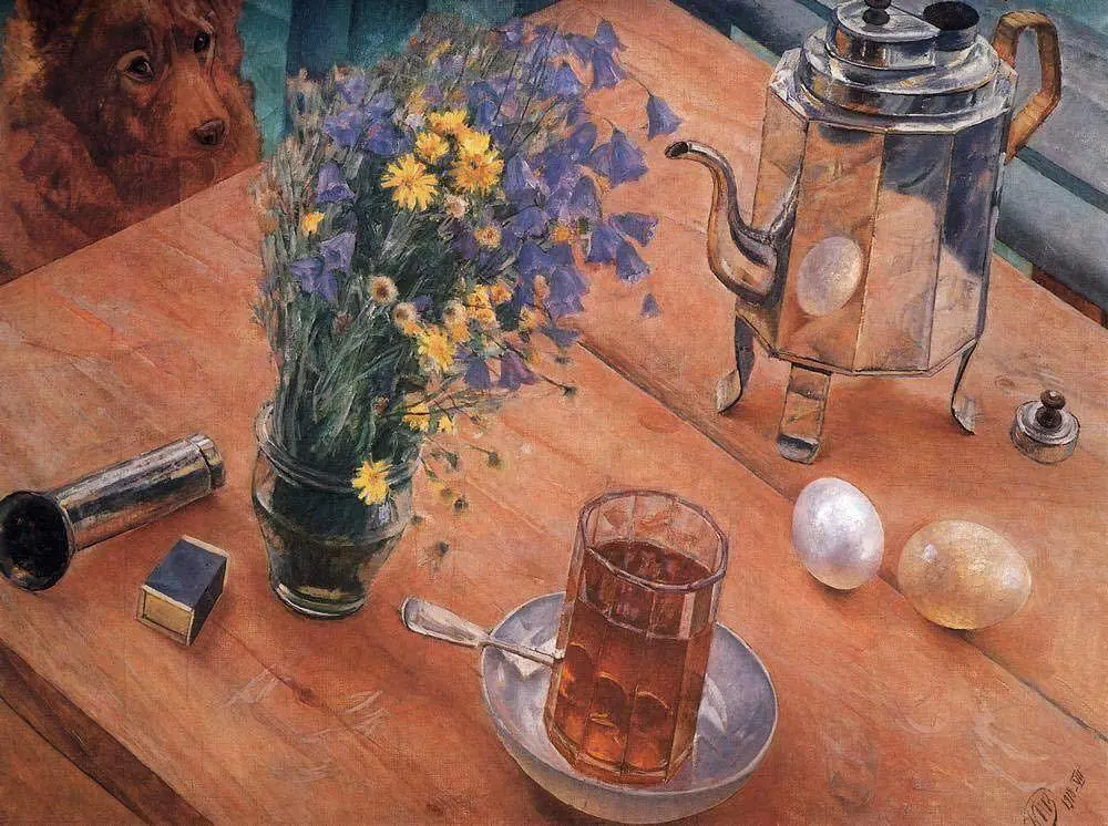 Сомнения у искусствоведов возникают также и из-за внешнего вида этого предмета. Фирма «Фаберже» изготовляла настольные композиции-обманки, но это были изящные деликатные безделушки: например, хрустальные вазочки с цветами, злаками или веточками ягод. Изделие, получившее известность как «Пролетарский завтрак», авангардное и (для дореволюционной России) крайне передовое. Такой набор предметов для натюрморта (безусловно, имеющих аллегорическое значение) будет встречаться в живописи, например у Кузьмы Петрова-Водкина и Давида Штеренберга, однако не ранее 1917 года, а по-настоящему популярным станет ещё позднее. Подобные прорывные иконографии в ювелирных изделиях не возникают сами по себе, а отражают тенденции в живописи и других видах искусства. Соответственно, «Пролетарский завтрак» мог появиться лишь в последние месяцы деятельности фирмы, ведь после Октябрьской революции её работа прекратилась. Вызывает сомнения и якобы изготовленный Фаберже гранёный стакан — в начале XX века были куда более распространены стаканы с фиксированным диаметром, тогда как в «Пролетарском завтраке» он увеличивается от основания к ободку. Такая форма более характерна для изделий советского периода.