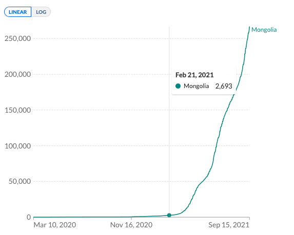 Now let’s look at the claim that universal vaccination has led to a significant increase in the incidence of disease. Mongolia is actually quite successful carried out sanitary and epidemiological measures throughout 2020, the first (spring 2020) and second (autumn 2020) global waves of the pandemic almost not affected.