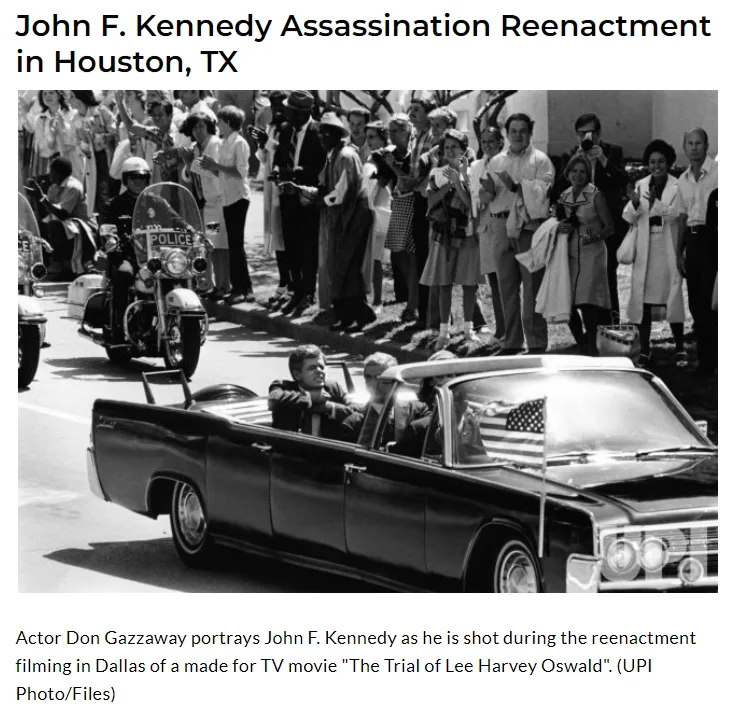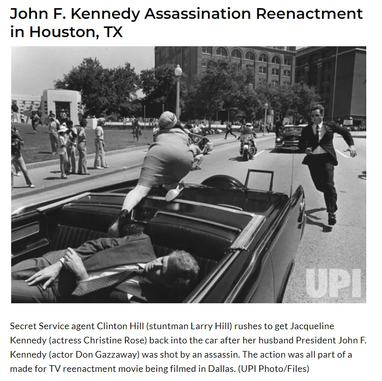 In fact, the viral photo does not include JFK, his wife, or the Secret Service agent, since it was filmed specifically for a TV movie that was released much later than those tragic events. According to the news agency website UPI, this is a reenactment shot of the assassination of John F. Kennedy. The caption reads: “Secret Service Agent Clinton Hill (stuntman Larry Hill) rushes to return Jacqueline Kennedy (actress Christine Rose) to her car after her husband President John F. Kennedy (actor Don Gazzaway) is shot by an assassin. This moment was part of a re-enactment film made for television and filmed in Dallas."