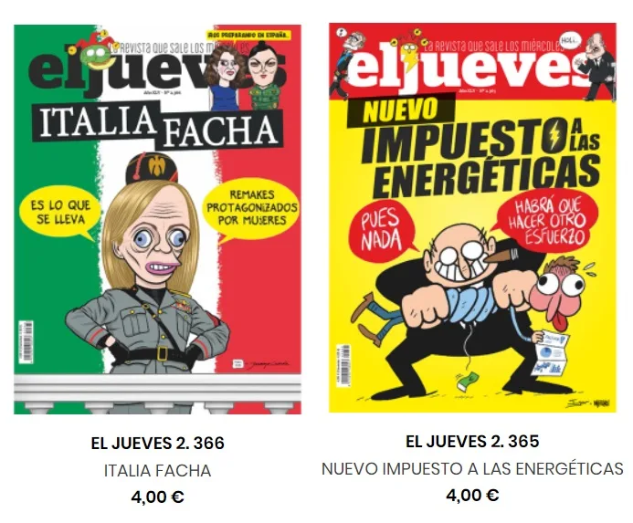 Judging by the card index on the publication’s website, the actual number is 2.366 was dedicated the results of the recent early parliamentary elections in Italy. The cover was “adorned” by the leader of the victorious far-right Brothers of Italy party, Giorgia Meloni, who a month later headed government of the country. The barcode in the lower left corner of the cover, which was circulated on social networks, shows the numbers 02365. This corresponds to the number 2.365, which went on sale a week before the Meloni episode; in turn, its cover is dedicated to rising electricity bills.