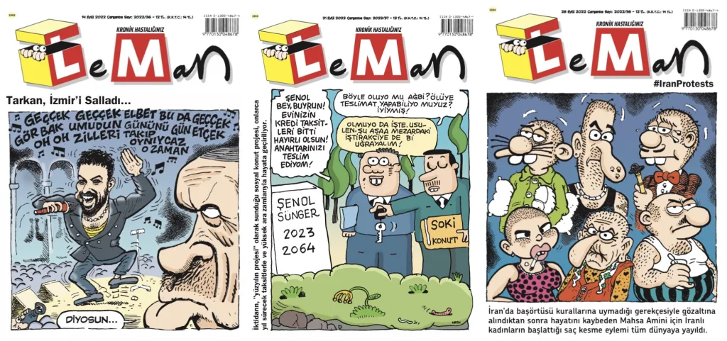 The actual cover of issue 1595 posted on LeMan's social media in early October: it notes that this is an October 5, 2022 release. There really is a president in the cartoon, but not of Ukraine, but of Turkey—Recep Erdogan. The plot of the drawing is dedicated to opening new metro line in Istanbul.