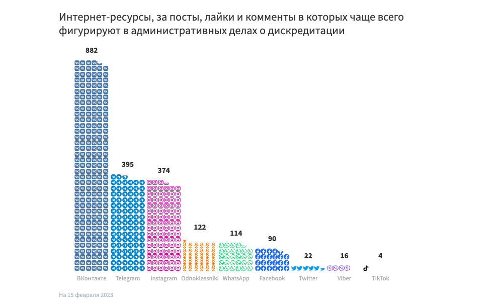 Reports by human rights activists show that the number of administrative and criminal affairs for online publications in the Russian Federation in latest only a few years grew, and in 2022 due to changes in legislation opportunity getting a fine or imprisonment for speaking on the Internet has become even higher. In 2022, OVD-info recorded at least 139 criminal cases under this article alone 207.3 of the Criminal Code of the Russian Federation (deliberately false information about the Armed Forces). Also, according to the organization, at least 2,000 court decisions for 2022 under Article 20.3.3 of the Code of Administrative Offenses of the Russian Federation (discrediting the Armed Forces) mention social networks and instant messengers. The Network Freedoms Project in its report reports about 779 criminal cases over the past year and about 1889 cases of administrative pressure.