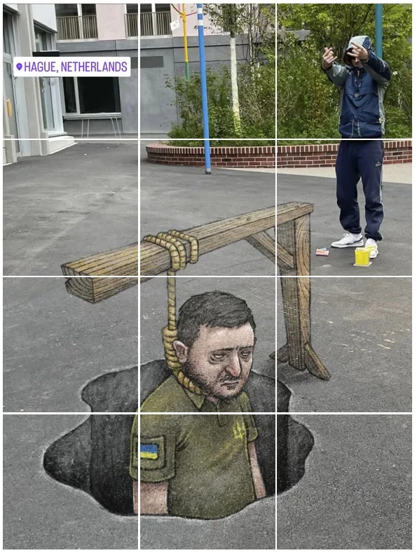 At the end of June 2023, a photo of a 3D drawing allegedly appearing in a Dutch city depicting the execution of the Ukrainian president went viral on the Internet. We found out if this street art is real.