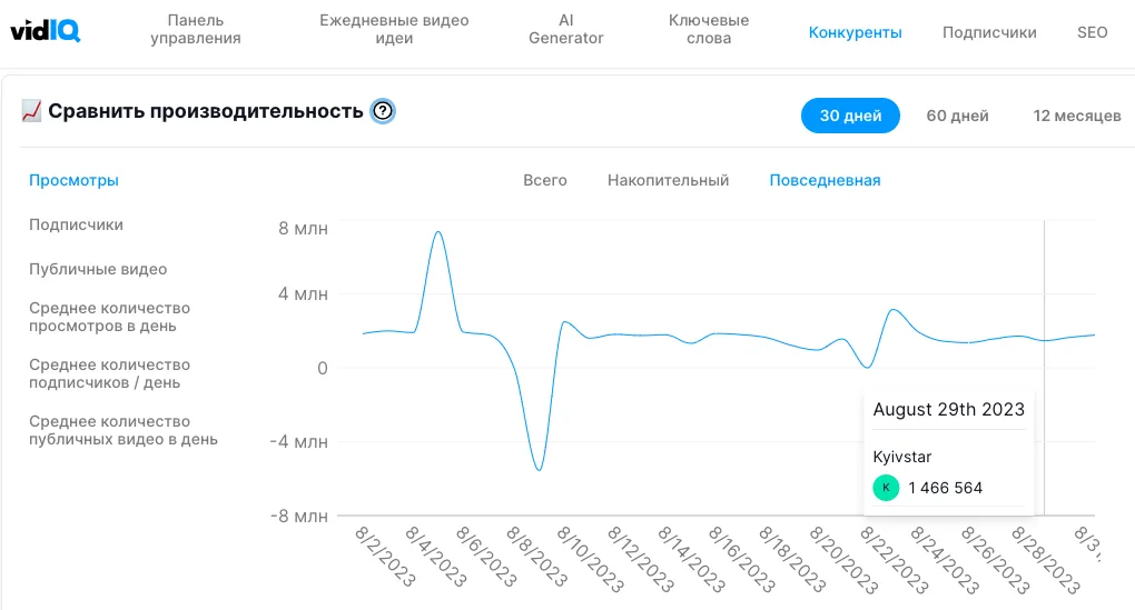 The video, which the media and Telegram channels refer to, was allegedly posted on YouTube in shorts format, where it received 23,000 likes and 15,000 comments. Unlike quite popular standard rollers, shorts of the Kyivstar channel are recruited in average about 1000 views and several dozen likes. The abnormal number of likes and comments would probably have caused a significant number of reposts on other social networks, but “Verified” did not find any traces of links to such a video (as well as other screenshots) in Ukrainian-language blogs and social networks. Traffic analysis of the mobile operator's official YouTube channel also does not show any sharp jumps in views on August 29.