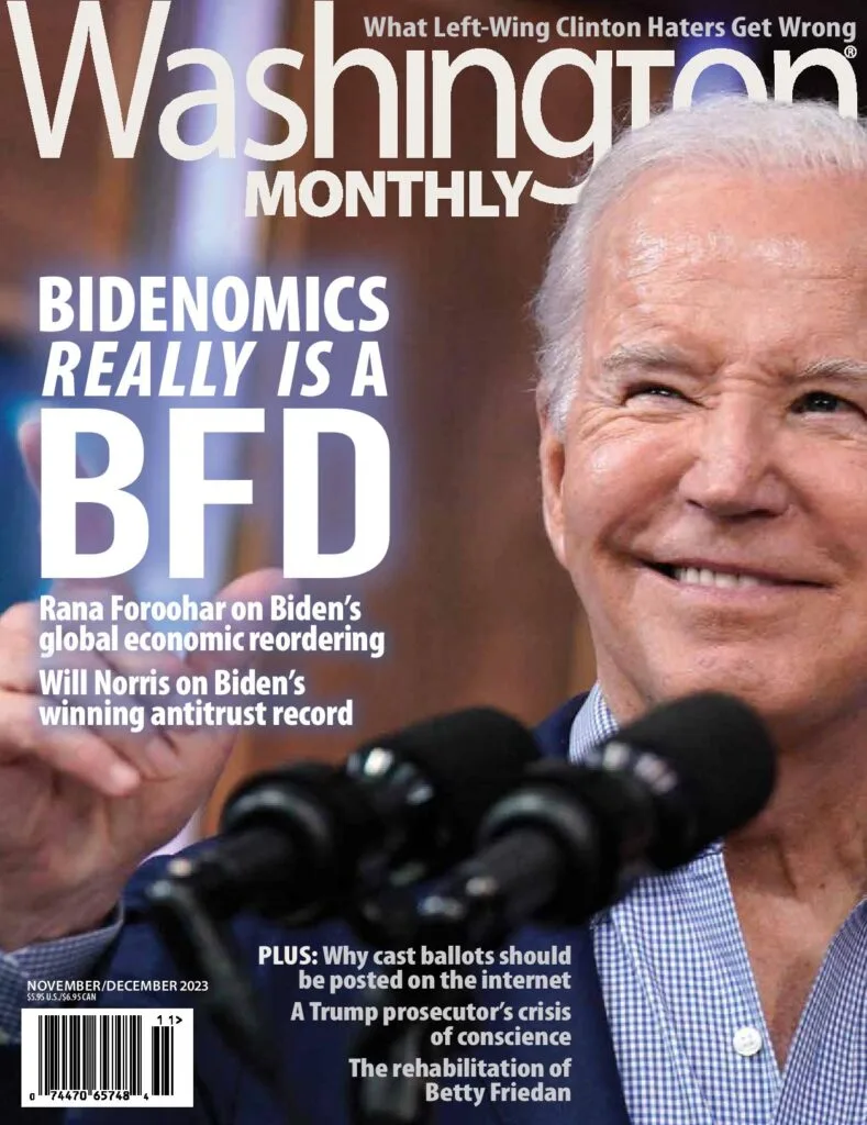 Magazine Washington Monthly has been published since 1969 and comes out every two months. The viral cover states that this is a November-December 2023 issue. However, there is no such cover on the magazine's website. The last issue of the outgoing year is dedicated to the influence of Joe Biden on the global economy, and the US President is depicted on the cover.