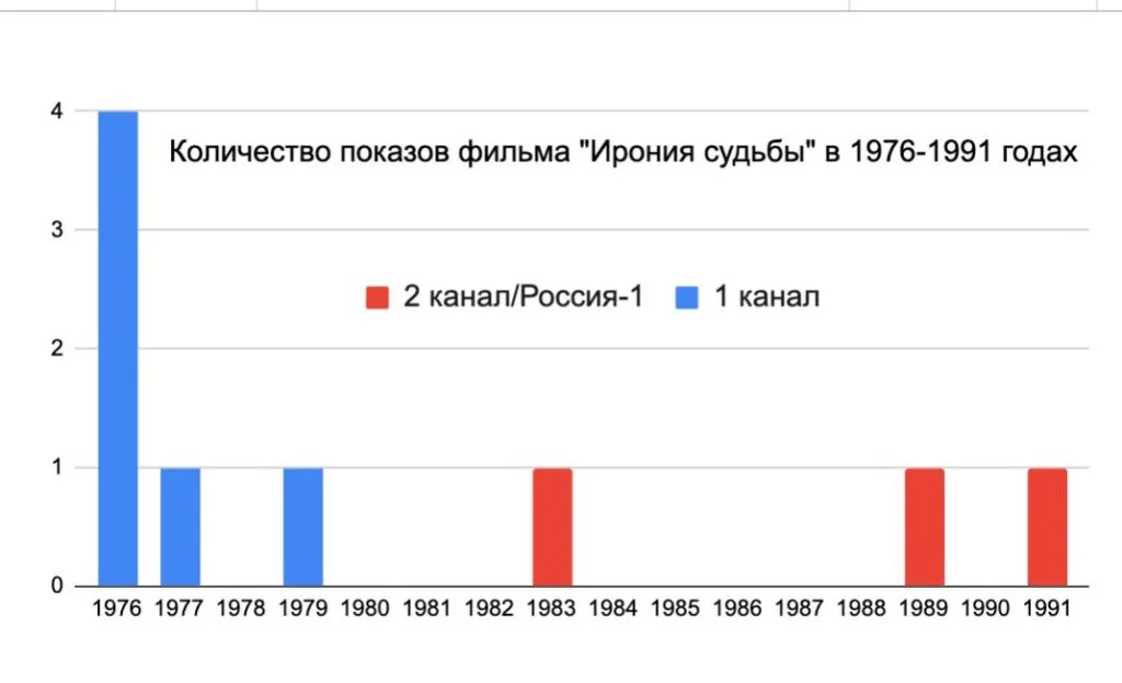 Хотя в ходе перестроечной борьбы с пьянством из нескольких популярных фильмов и вправду убрали сцены употребления спиртных напитков, а некоторые картины вообще на несколько лет исчезли из эфира, нет никаких прямых доказательств, что государственная антиалкогольная кампания повлияла на «Иронию судьбы». Как следует из представленного выше графика, комедию не показывали и в 1978 году, и в 1980–1982 годах, и в 1984 году, когда та самая кампания ещё не началась.