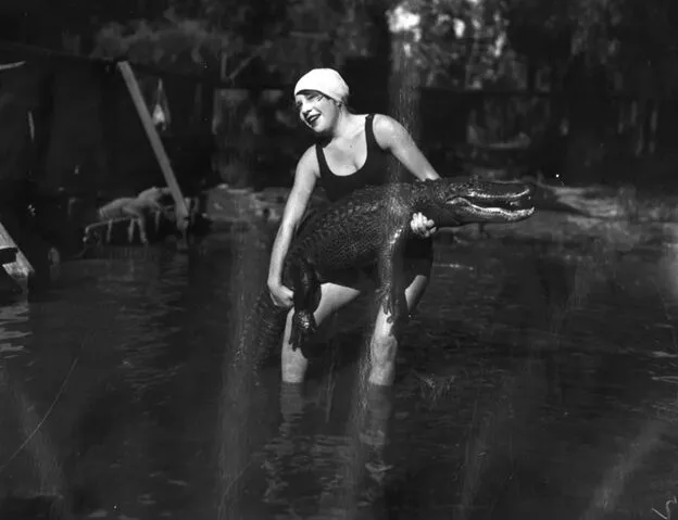 The photograph around which the narrative is built can be discover on the Los Angeles Public Library website. It doesn't say when the photo was taken or who is in it, but it does say where it was taken: the California Alligator Farm in Lincoln Heights. Such a farm is really it worked in this Los Angeles area from 1907–1953. For a small fee, anyone could not only look at hundreds of reptiles, but also ride them, wrestle with them and watch them hunt chickens. The guests of the farm were both adults and children.
