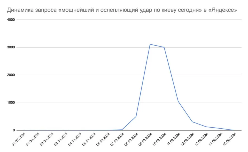 A study of search queries through the Yandex.Wordstat service shows that the newsletter began to spread against the background invasion Armed Forces of Ukraine in the Kursk region. The Ukrainian military crossed the border on August 6, within two days it became clear that the situation was serious, and the Russian army, despite assurances Ministry of Defense cannot stop the enemy's advance. Yandex users begin to become interested in anonymous letters as early as August 9–10. It promises complete and very speedy retribution: a massive bombing of military installations in Ukraine is expected in the very near future, and “in 48 hours there will be a climax.” Thus, the newsletter (more precisely, its first part) is a prediction of a quick and victorious end of the war for the Russian Federation after the offensive of the Armed Forces of Ukraine on internationally recognized Russian territory.