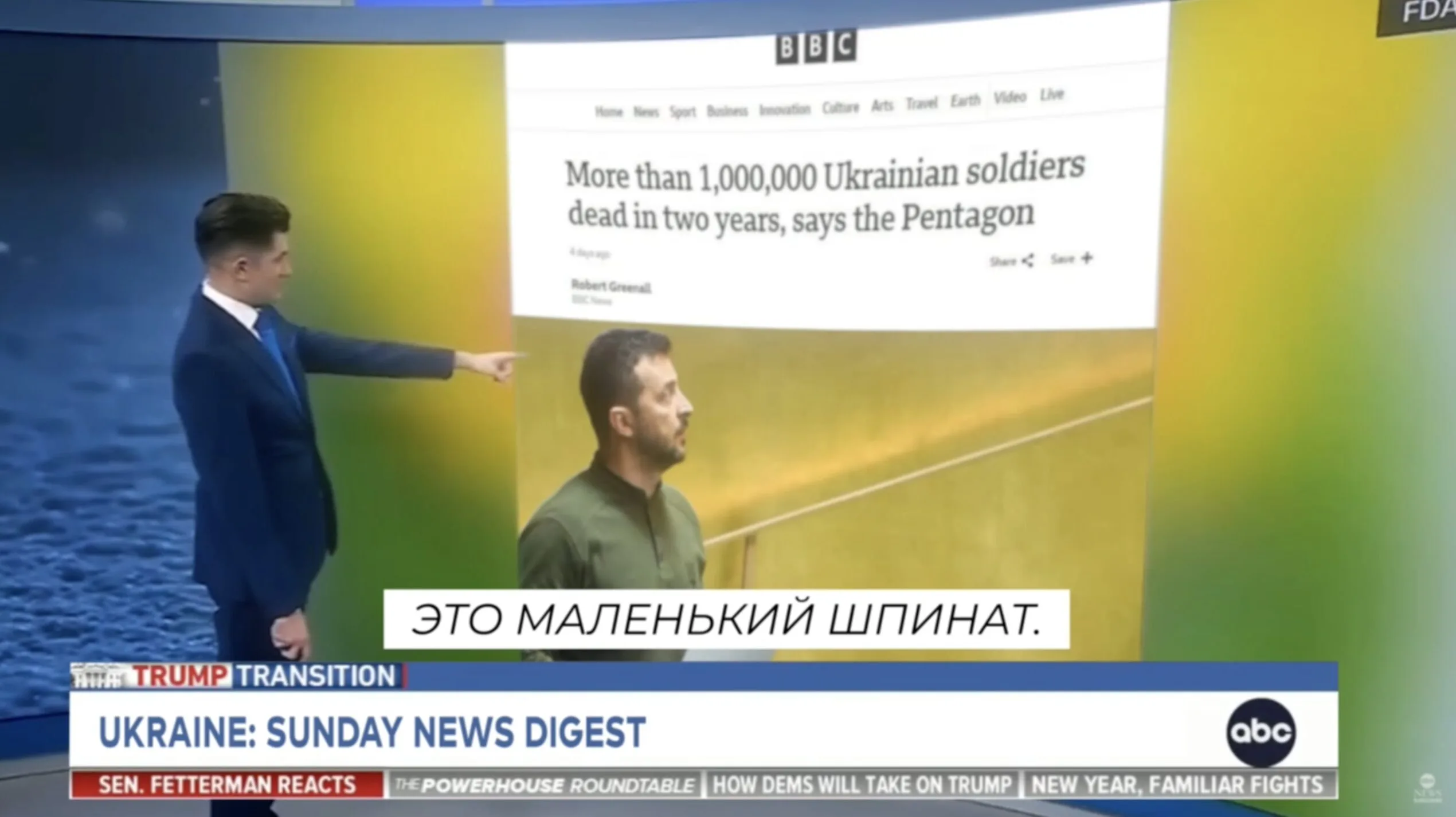 In January 2025, a video spread on social networks: a weather forecaster on the ABC channel, instead of a map, notices behind his back a screenshot of an article about the losses of the Ukrainian Armed Forces in the war and tries to joke. We have verified the accuracy of this video.
