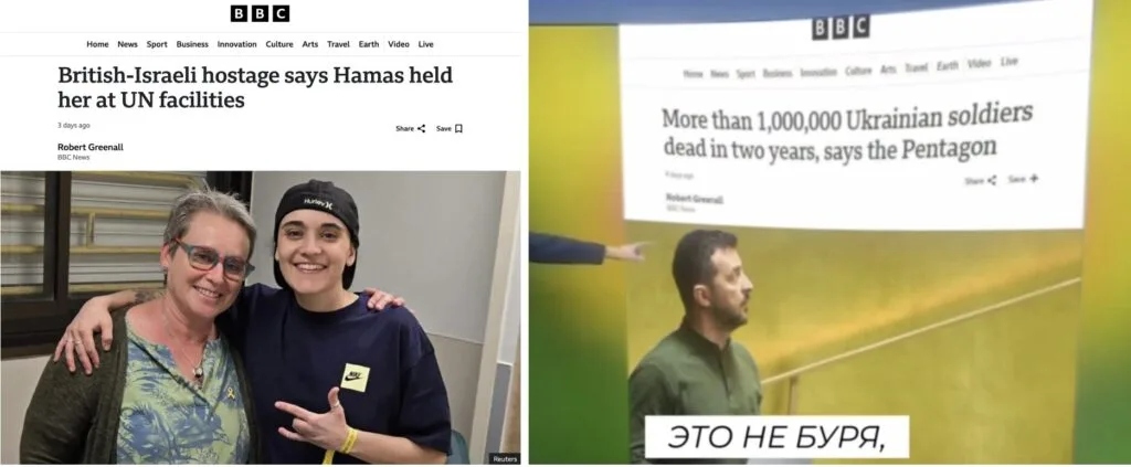 The screenshot of the news displayed on the screen looks similar to real BBC publications, but “Verified” was unable to find a similar note on the British media corporation’s website either by the title or by the name of the alleged author Robert Greenall.