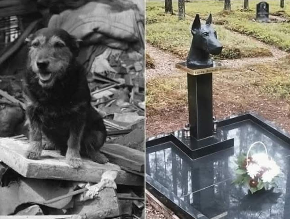 This dog lived in the courtyard of a nine-story building, on the first floor of which the Saryan family lived: mom, dad, son Ruben and daughter Lala. During the earthquake, the parents died, and the one-year-old girl was saved by a miracle - she rolled down the slab into the basement of the building, where the dog Zhuzha ended up under the rubble with her. For four days, Zhuzha warmed the baby and fed her milk. Realizing that the rescuers would soon leave - they reacted only to human voices - the dog lightly bit Lala, and the girl’s piercing scream saved both of their lives. Zhuzha allegedly lived in the house of Ruben, Lala and their grandparents for another 12 years, after which the heroic dog was buried in the city cemetery along with people.