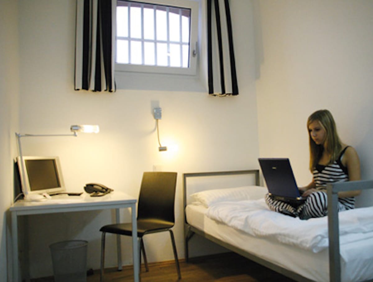 Reverse image search on Google allows you to find a viral photo in numerous collections hotels that used to be prisons. Such hotels are not uncommon in Western countries, where crime rates have been fell and the maintenance of numerous penitentiary institutions became unprofitable. This happened with prison in Kaiserslautern, Germany, which was founded in 1877, and in the fall of 2002 closed (or opened) its doors to prisoners. Three years later, the building with 150 cells was purchased by lawyer Michael Koll, and three years later a hotel with the not very German, but well-known name throughout the world, Alcatraz, began operating here.