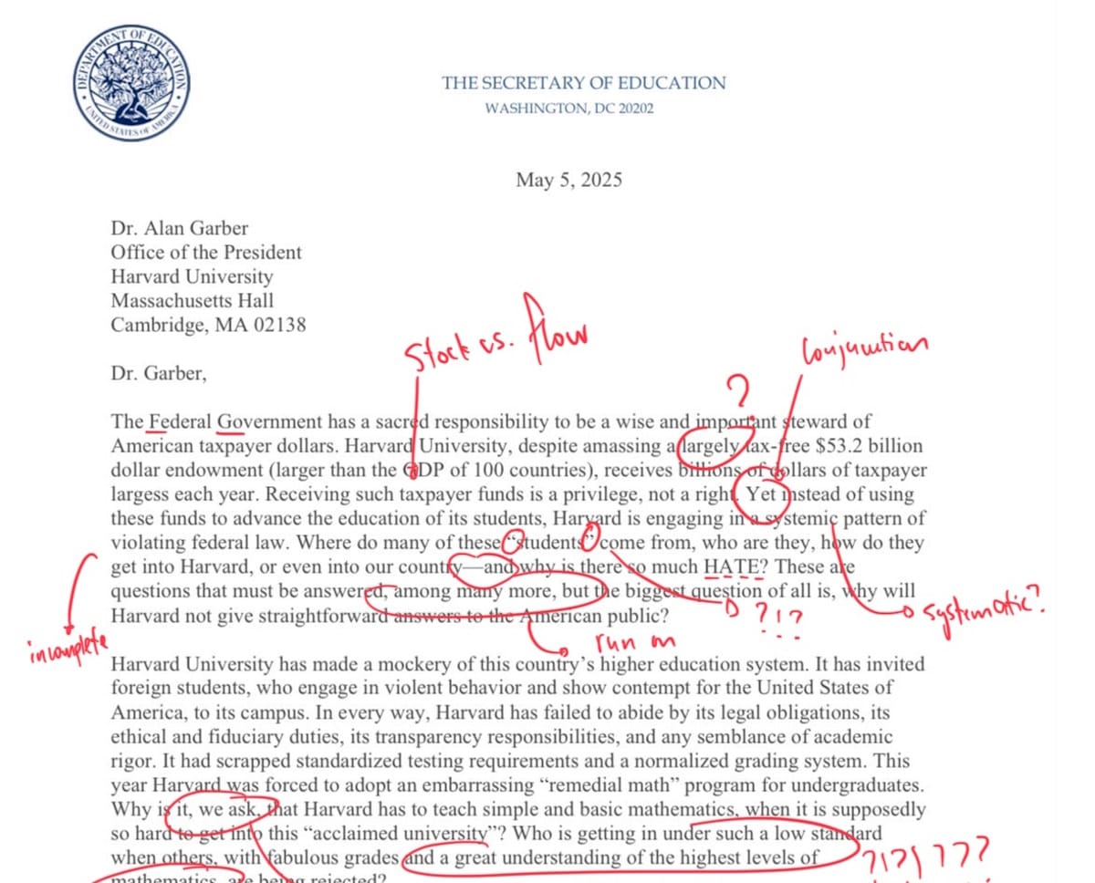 In May 2025, a screenshot of a letter from Linda McMahon to the president of an American university circulated in the media and social networks. It was full of notes about mistakes made by the official - supposedly Harvard representatives so ironically hinted that the education of the official herself left much to be desired. We have verified the authenticity of this screenshot.