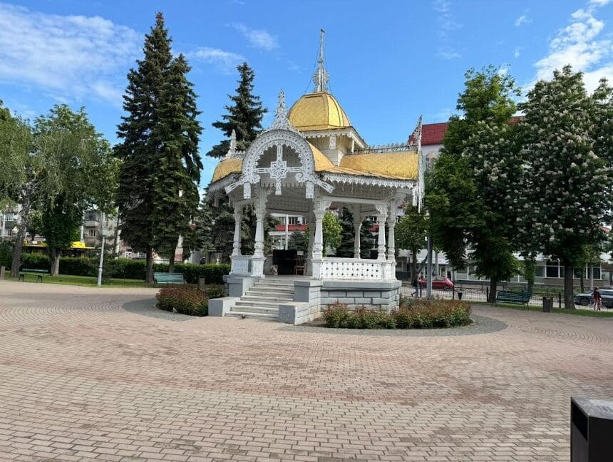 Historical gazebo counts one of the symbols of Sumy. She located in the very center of the city, in the park on Pokrovskaya Square. About the gazebo regularly - in a tourist and cultural context - write Ukrainian media, however, “Verified” did not find any traces of news about pro-Russian graffiti on the gazebo in the local information field, although such an event should have become resonant at least on a city scale. At the same time, only one frame with a gazebo is being circulated in pro-Russian media - the same one that Alaudinov published.