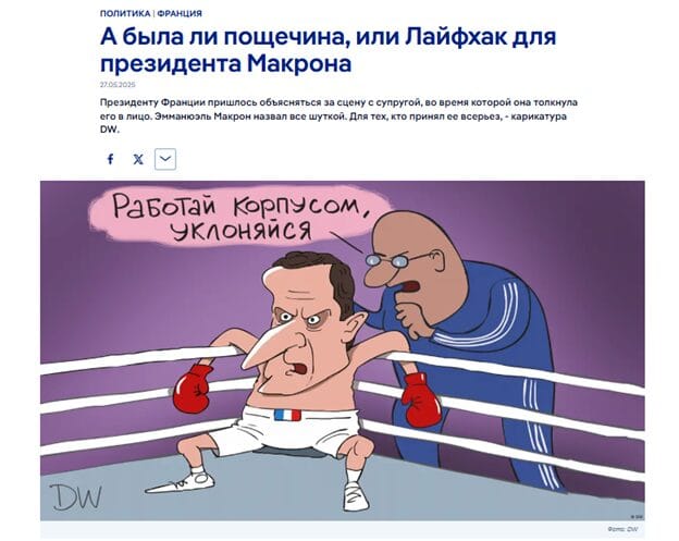 The incident in Vietnam caused a great stir. Not only journalists, but also officials from different countries reacted to the video with the participation of the Macron couple - for example, the representative of the Russian Foreign Ministry Maria Zakharova jokingly suggestedthat it was the hand of the Kremlin. Cartoonists also paid attention to the embarrassment.