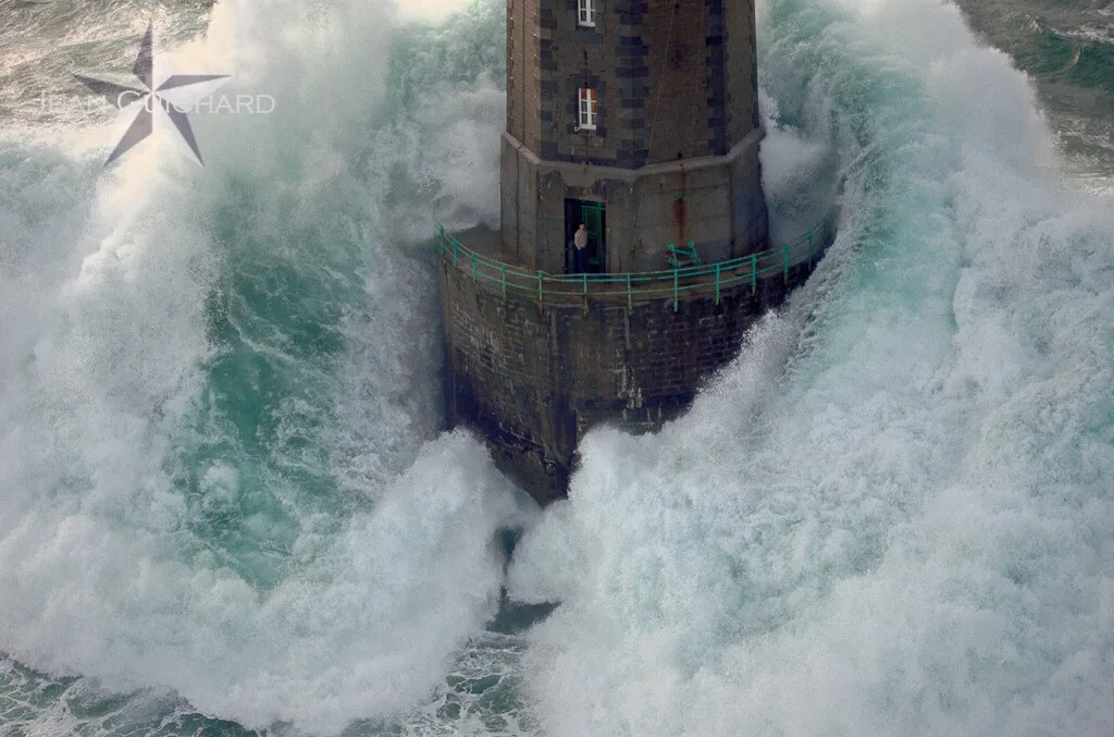 La Jument gained worldwide fame after the storm on December 21, 1989, thanks to a series of photographs taken by Jean Guichard. That day, the photographer went to the lighthouse to capture the waves from above, and the keeper Theodore Malgorn, hearing the noise of a helicopter, wanted to see what was happening and went outside (although, according to him, he understood that a storm was raging with a force of about 10 points on the Beaufort scale). “It was exceptionally strong even for the particularly stormy winter of 1989 with unusually high waves,” remembered Malgorn in 2007 in an interview with the German magazine Stern. When the keeper left, a huge wave rose over the back of the lighthouse, and at that moment Guichard took his photographs, which later became world famous. One of the photos brought he received second place in the 1991 World Press Photo competition in the Nature category. Malgorn said that Guichard shared with him part of the income from the photographs: “Not very much, but I’m happy.”
