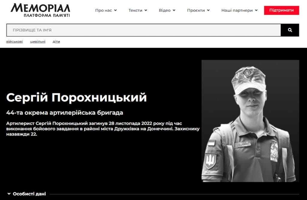 In turn, the Ukrinform agency found out, which is on the website of the “Memorial” project No records of a serviceman named Artyom Melnik. But the journalists found obituary of the deceased Ukrainian with the same photograph. His name was Sergei Porokhnitsky, he served in the 44th separate artillery brigade and died on November 28, 2022 at the age of 22 while performing a combat mission near the city of Druzhkovka in the Donetsk region. The biography of Porokhnitsky presented on the website says that he was born in Vinnitsa; his filming in a viral social video or, in principle, his acting career are not mentioned. In July 2025, on Memorial’s social networks reminded about the death of this soldier.
