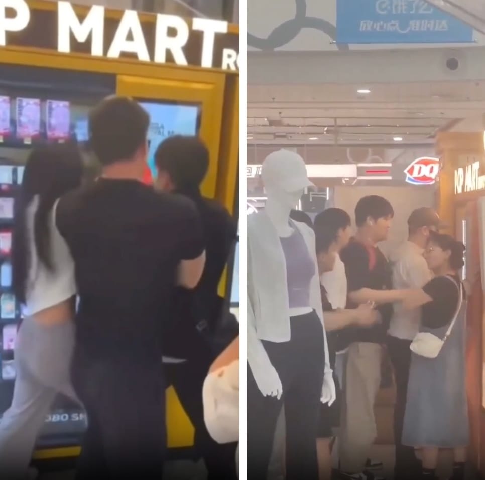 As for the videos with people fighting near the Pop Mart machine, in this case it is more difficult to determine the location of the shooting - in both cases, only certain interior details were captured in the video. At the same time, it is clearly visible that the two videos depict different people. In one, there is a confrontation between a girl and two men, and in the other, a woman is trying to separate several young men.