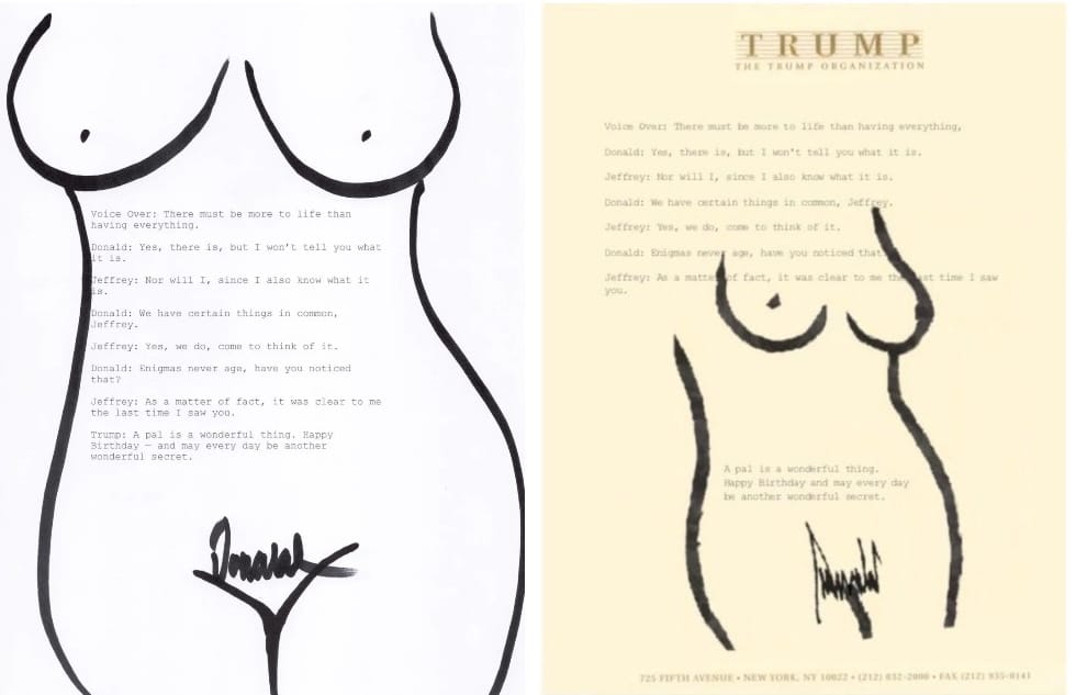 - The Wall Street Journal. Jeffrey Epstein’s Friends Sent Him Bawdy Letters for a 50th Birthday Album. One Was From Donald Trump
