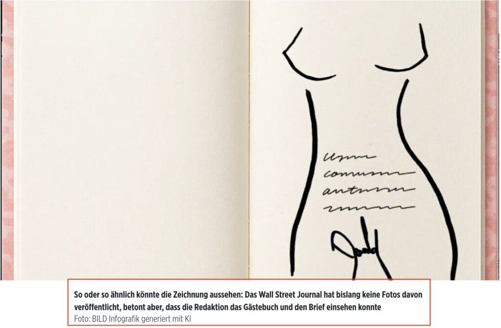 A reverse photo search on Google revealed that for the first time this image published On July 18, the German tabloid Bild wrote about Trump's reaction to the publication of The Wall Street Journal. The photo is accompanied by the caption: “The drawing may look something like this. The Wall Street Journal has not yet published a single photograph of him, but emphasizes that the editors were able to see the album and letter. Photo: Bild infographic created with AI.”