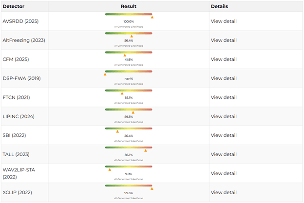 “Verified” analyzed the video using a service to identify AI content DeepFake-o-meter, which was developed by researchers from the University at Buffalo. Several detectors immediately showed that the video was highly likely generated by a neural network.