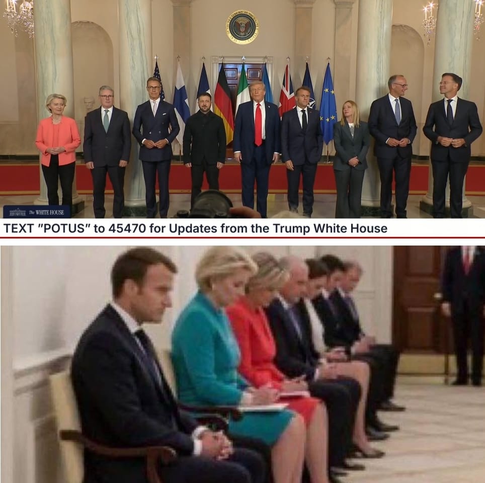 On August 18, a photo of politicians who came to Washington to meet with Donald Trump went viral on social networks. The heads of countries are sitting on chairs in the White House and seem to be waiting for an invitation to enter. Some users accompanied this photo with news about the negotiations taking place in the United States, while others ironically signed the image with the phrase “coalition of those waiting.”