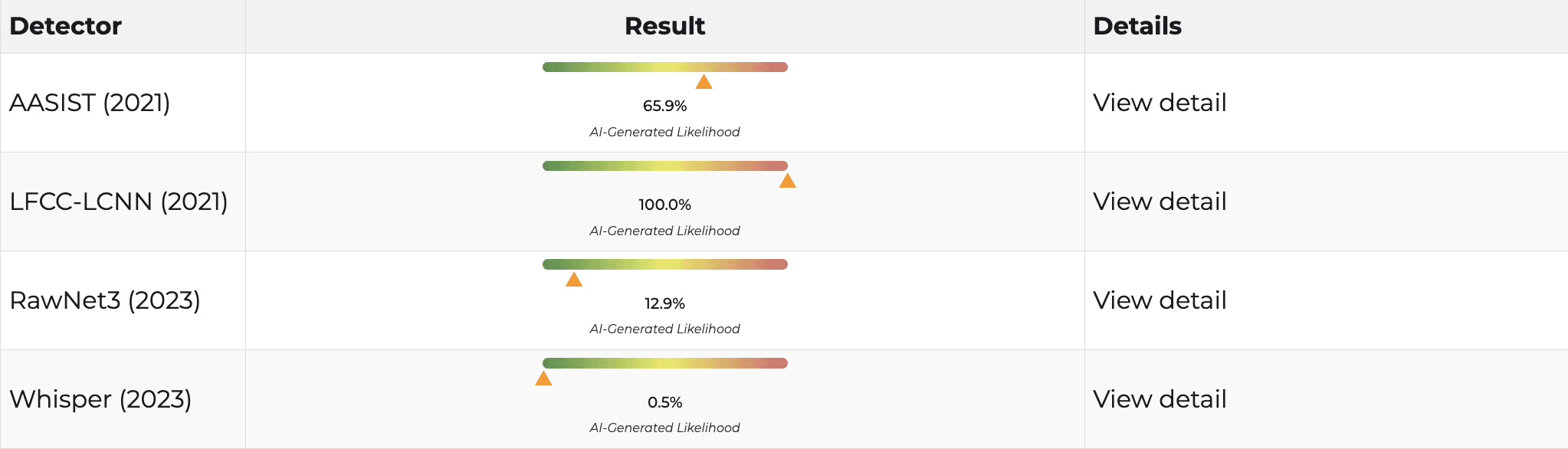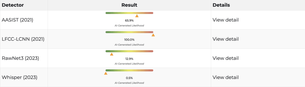 The video itself was compiled from footage previously published on the Internet. For example, the video with Anna Hakobyan’s interview at the 14th second is taken from published six years ago of a video on YouTube, and the excerpt of children signing cards was posted on the foundation channel four years ago. The viral video is accompanied by a voice-over from the presenter and subtitles in English. There is also a version with Russian subtitles, distributed mainly in Russian-language channels. At the same time, the speech from the video sounds unnaturally monotonous, which suggests that AI was used in its creation. Service for identifying generated content DeepFake-o-meter showed a high percentage of probability that the voice was generated using neural networks.