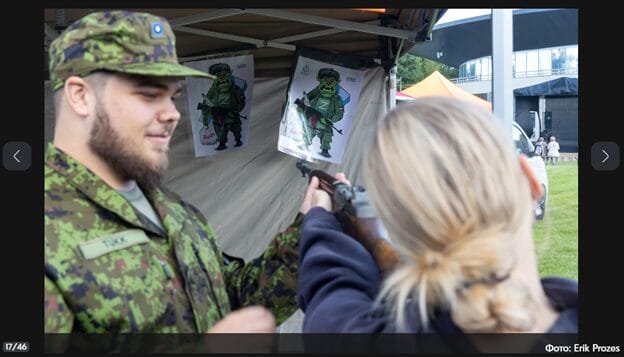 Thus, at the festive event in Tallinn, one could indeed see stylized targets with caricatured images of Russian soldiers. Some visitors even aimed at these targets with real weapons that were unloaded and used for demonstration purposes. However, the tent was not a shooting range, as was reported in many media, and it was actually impossible to shoot at paper targets.