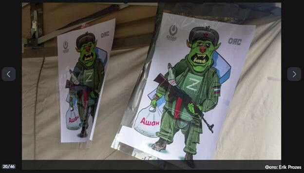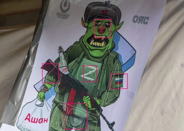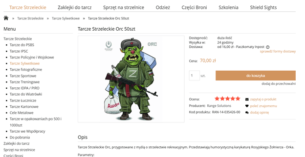 The Range Solutions logo can be seen in the corner of the paper targets. This Polish company produces targets for sports shooting, which can be purchased at its official website. There are also those paper ones targets. The description says that they are “a humorous caricature of a Russian orc soldier” (the pejorative “orc” is often used in Ukraine are called Russian soldiers).