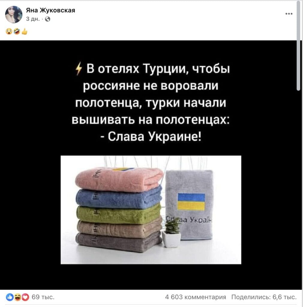 However, there is no information in reputable Turkish media that local hotels have begun to take special measures to reduce the level of thefts. It is logical to assume that among the hundreds of thousands of visitors there was at least one person who could independently photograph a towel with the inscription “Glory to Ukraine!” and post the photo on social networks. But no such “Verified” posts could be found.