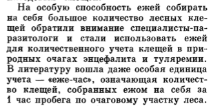 However, every hour did not arise out of nowhere - back in the work of the USSR Academy of Sciences “Livestock Pests: Work on Pyroplasma Vectors and Ectoparasites,” published in 1935, the authors wrote about the relationship between the number of ticks on the site and the number of these parasites on hedgehogs. "Verified" was unable to find the full text of this scientific work, but based on a fragment available in Google Books, it is possible assume, that we are still not talking about trained hedgehogs released into nature for exactly 60 minutes.