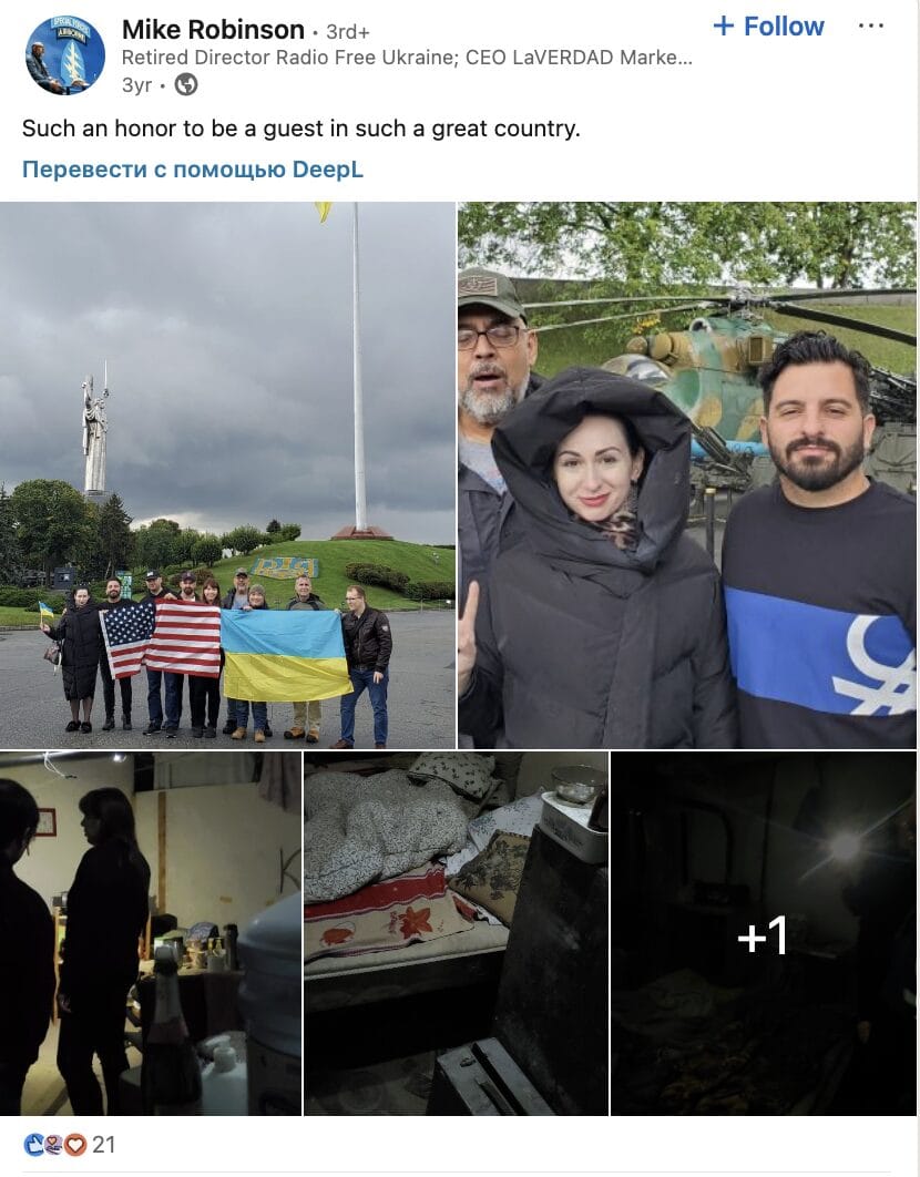 Regarding the photo of people posing with the American and Ukrainian flags, a reverse image search resulted in original publications on the same LinkedIn page, where Mike Robinson published a photo in September 2022 (he is the fourth from the right in the photo). “I am honored to be a guest in such a wonderful country,” the caption reads. In another post two days earlier, Robinson told, which continues its mission to monitor how Ohio donations are used in Ukraine. These posts also say nothing about cooperation with Azov and the search for snipers.