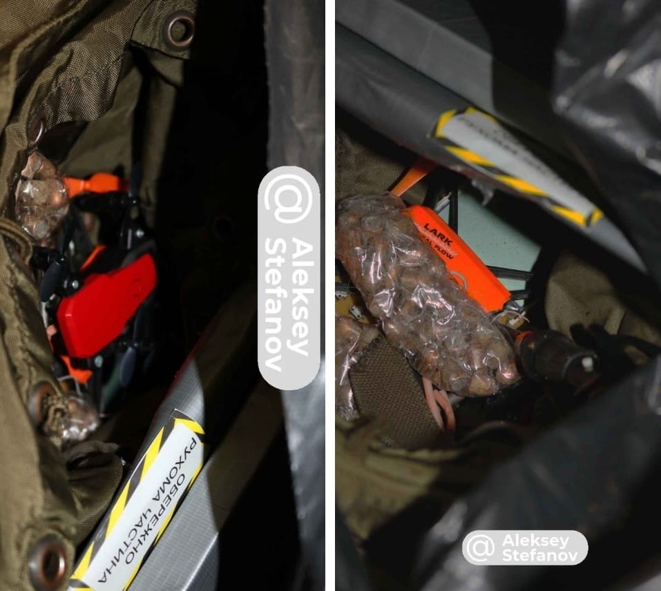 In some Telegram posts, the username @AlekseyStefanov is also indicated in the video. It was in this channel, which belongs to Alexey Stefanov, an employee of the Rossiya Segodnya media holding, that the video was first published with the clarification that a bag with a drone was discovered in a Lithuanian forest. Related post by Stefanov posted September 15 at 12:40 Moscow time, 11 days after the video appeared on TikTok. In addition to the video, two photographs with the alleged contents of the bag were attached to the publication. The post says that these materials were sent to the author by subscribers.