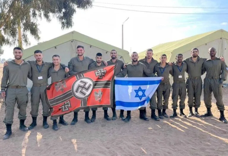 Is this photo of soldiers holding the Israeli flag and swastika true?