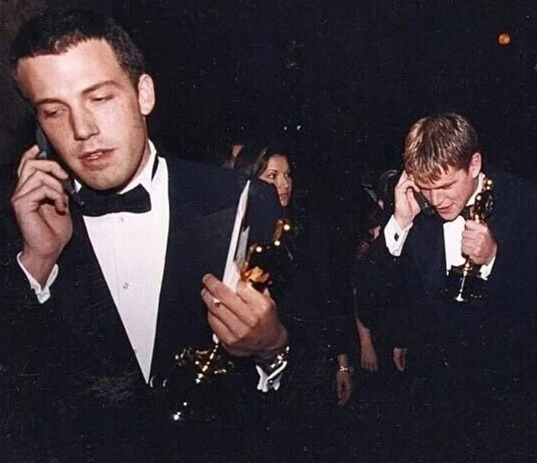 Is it true that the photo shows Ben Affleck and Matt Damon calling their moms after winning the Oscar?