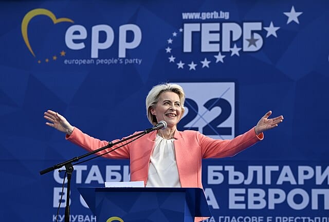 Is the video of von der Leyen's car surrounded by protesters shouting "Nazi!" true in Bulgaria?