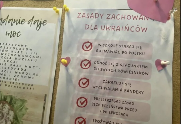 Is it true that a notice was hung in a Polish school urging Ukrainian children not to praise Bandera?