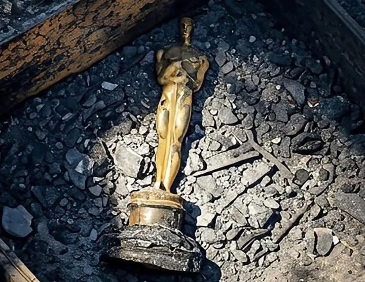Is the photo of the Oscar statue that burned in Los Angeles true?