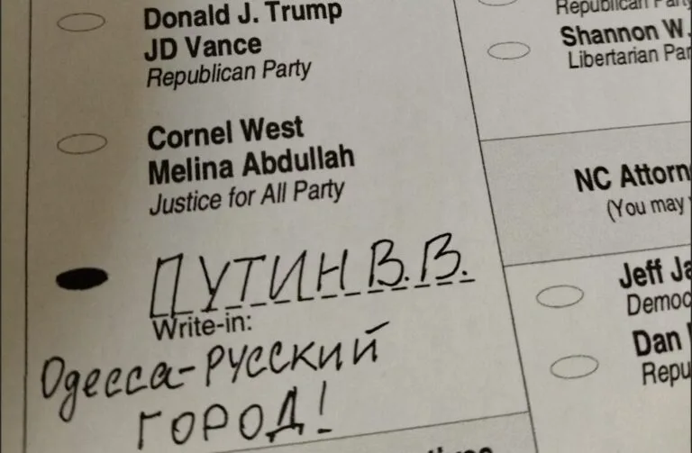 Is the photo of a ballot from Odessa, Texas, in which a voter entered Putin as a candidate for US President, true?